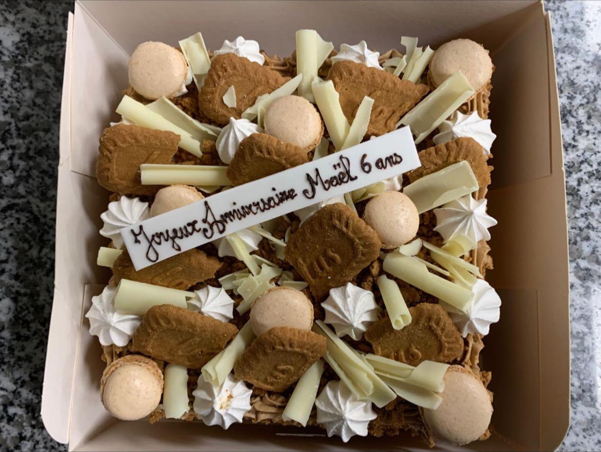 Composition : Base croustillante en pailleté feuilletine, garnie d'une mousse Spéculos et d'un biscuit moelleux et léger !