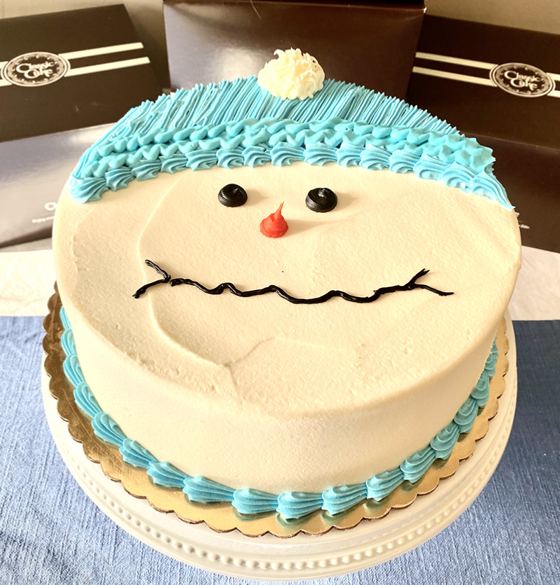 - Le décor à la poche : dégradé, bonhomme de neige, flocons en pâte à sucre selon vos envies !